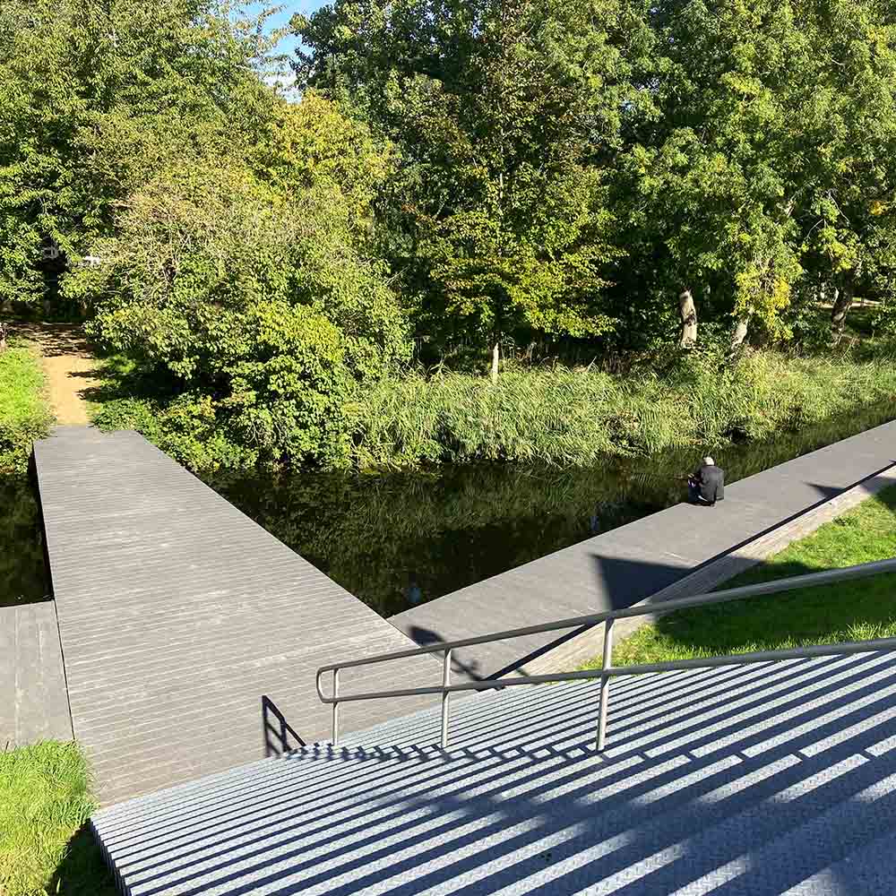 Zur Verbesserung der Lebensqualität und des kulturhistorischen Anblicks des geschützten Stadt- und Dorfbildes von Capelle aan den IJssel entschied sich der Bauherr für den Bau eines neuen GFK-Spaziergänger- und Angelstegs. Die Tatsache, dass der Slotpark neben dem historischen Wassergraben auch nationale Denkmäler und monumentale Bäume beherbergt, machte dieses Neubauprojekt zu einem außergewöhnlichen Auftrag. Für den Spaziergängersteg, der auch als Angelsteg genutzt wird, empfahlen wir für das gewünschte Erscheinungsbild unseren GFK-Brückenbelag 256.40.