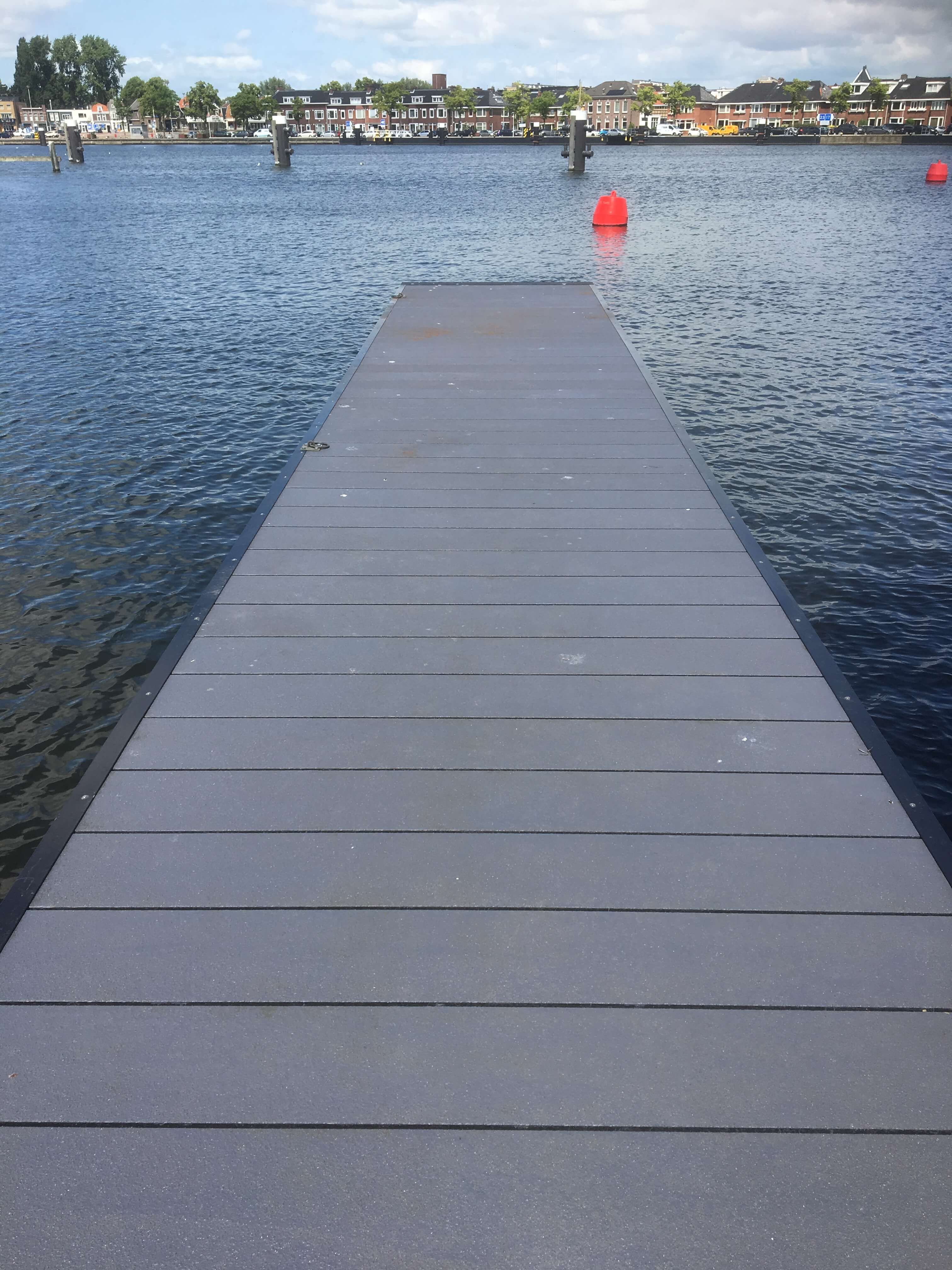 Der Steg im Spiekeroog am Alten Hafen an der Zaan war sanierungsbedürftig. Für den Ersatz des alten Holzsteges wählte die Gemeinde Zaanstad unseren GFK-Brückenbelag 256.40. Die städtische Instandhaltungsabteilung hat ca. 274 m2 selbst auf dem Unterbau des Steges angebracht. Die Instandhaltungsabteilung führte die Sanierung mit ihrem eigenen Wartungsschiff durch, womit die Unannehmlichkeiten für die Anwohner vor Ort auf ein Minimum reduziert werden konnten.
