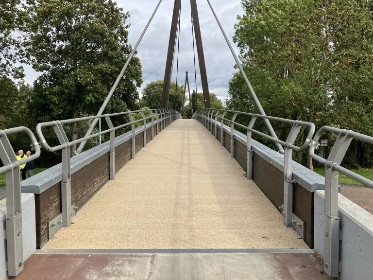 At 55 mm, this FRP bridge decking plank is a little higher than our other FRP bridge decking elements. This means that the plank can take a heavier load and has less tendency to sag. The result, unique for FRP bridge decking of this size, is a pedestrian or cycle bridge that can be easily crossed by service vehicles and any vehicles that may happen to pass over it.