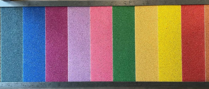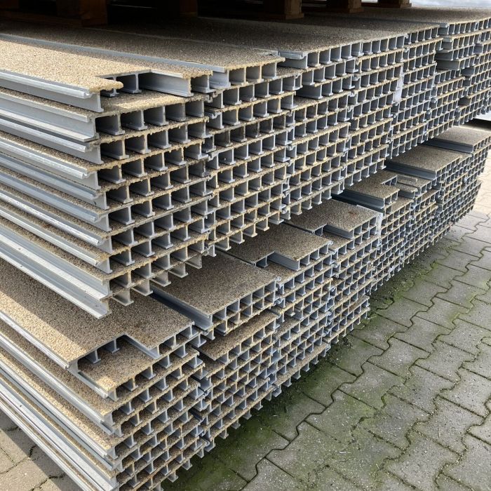 All bridge decking planks can, if required, be fitted with a wear layer. The wear layer is TÜV-tested and fitted with R12 and R13 slip resistance according to EN13501-1:2007+A1:2009 and ISO11925-2:2010. To meet the increasingly stringent environmental requirements, we decided to use a wear layer made from recycled glass. The glass that we use is no longer suitable for remelting into a new product. This makes our wear layer more sustainable than quarried macadam, which our wear layers were previously manufactured from. Glass is inherently highly resistant to wear and tear. This means that it will have a longer economic life and will require fewer periods of maintenance. This leads to a lower environmental impact. Glass has a high shatter resistance, is maintenance-friendly and is naturally resistant to moisture and dirt. It also retains its functional properties over a long period of time. The wear layer is available in fine sizes of 1-2 mm and 1-3 mm in a range of colours, with the 1-2 mm being our standard grit size. The wear layer with fine glass grit is nicer to walk on with bare feet. We can also apply a top coat to the planks. The top layer is a liquid-proof, high density sealing that encloses all glass particles, preventing any grit from coming loose.