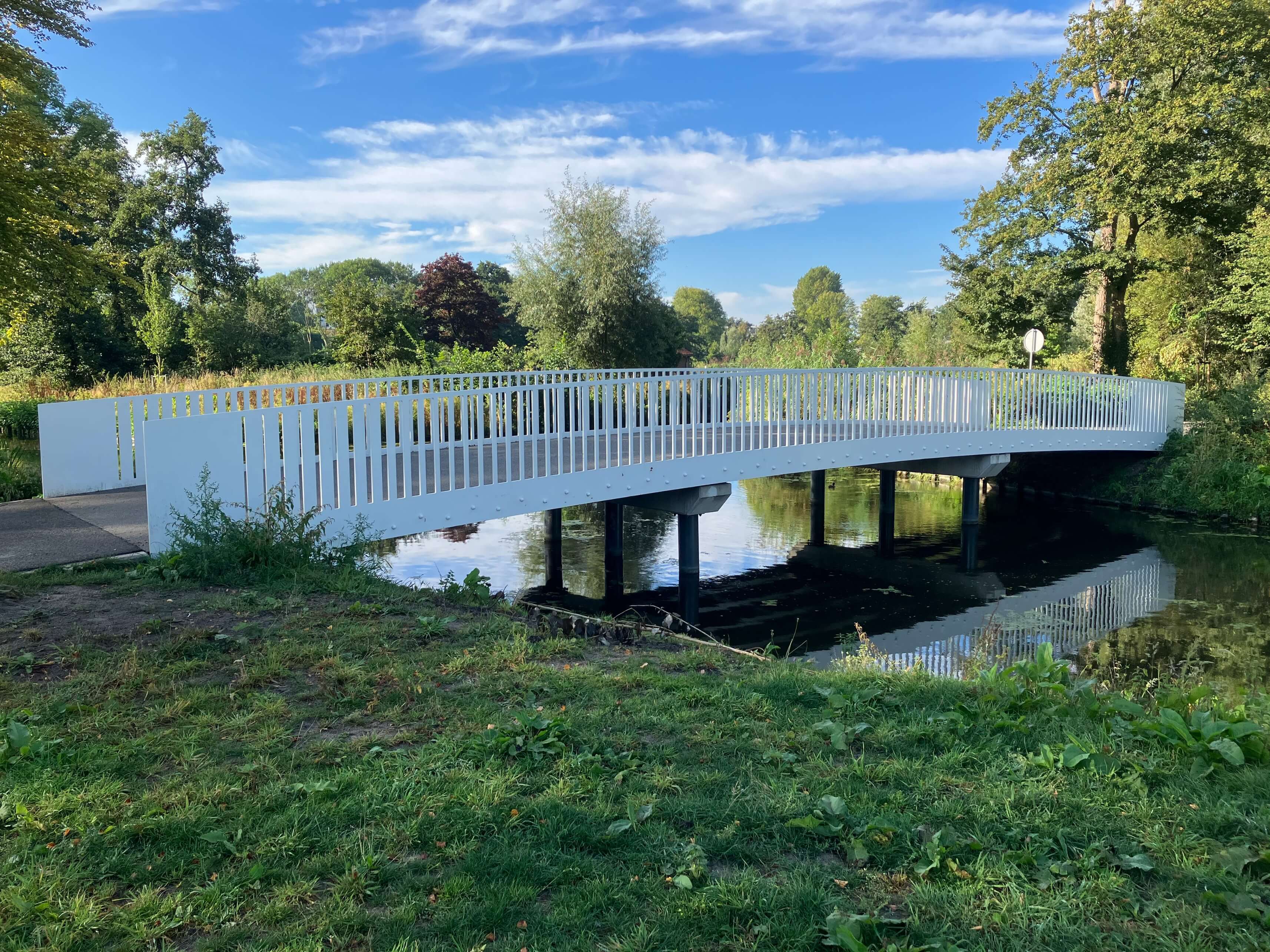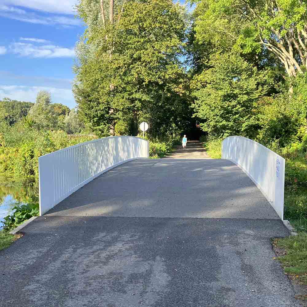Due to a large-scale renovation of the Schoterbos in the heart of Haarlem, we were asked to supply 772 m² of GRP Bridge Deck Plank 500.55 for the construction of pedestrian and bicycle bridges. The Schoterbos was in need of renovation due to flooding, poor accessibility and an outdated drainage system. The municipality decided to enrich the city park with more space for water, a generous system of paths and multiple cycle paths. The new nature park, covering a total of 24 hectares, is characterised by its water-rich layout and recognisable features such as the utility garden island, event island and play hill. Due to the many water routes, the construction of GRP pedestrian bridges and GRP cycle bridges was inevitable. krafton® supplied contractor Oosterhof Holman with approximately 772 m² of GRP bridge decking for six bridges in the Schoterbos. The GRP bridge decks, which are used by both cyclists and pedestrians, have been given clearly different colours of anti-slip and wear layers for each type of use. This makes it clear on the bridge deck which part of the road is intended for cyclists and which part for pedestrians.
